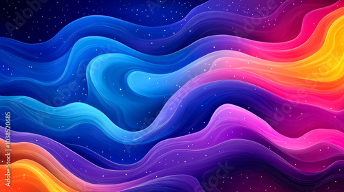 abstract, background, colourful, wave, wavy, night, sky, star, galaxy, universe, cosmic, space, pattern, design, vibrant, modern, artistic, digital, graphic, illustration, texture, smooth, dynamic, fluid, motion, swirl, flow, futuristic, bright, neon, glow, gradient, liquid, paint, art, hallucinogen, surreal, fantasy, dream, imagination, creative, style, trendy, wallpaper, banner, poster, website, decoration