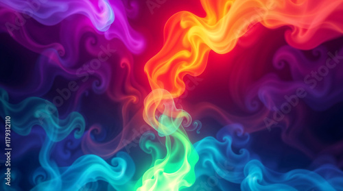 Abstract composition featuring smoke and light in bright neon colors against a dark background
