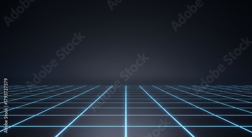 Abstract conceptual visualization of a vibrant glowing blue grid on a dark background, representing futuristic technology, digital data streams, and immersive virtual reality environments