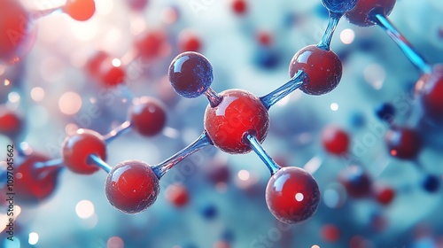 Abstract connections of molecules in red and blue for research representation