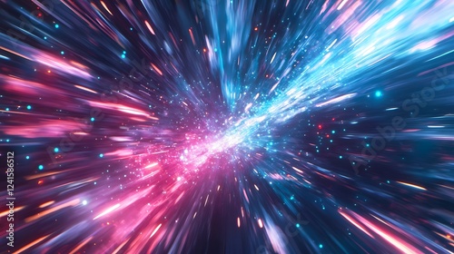 Abstract Cosmic Explosion with Pink and Blue Light Streaks