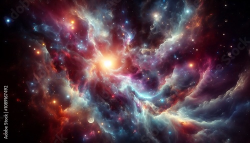 Abstract Cosmos Background with Nebula and Galaxies in Space