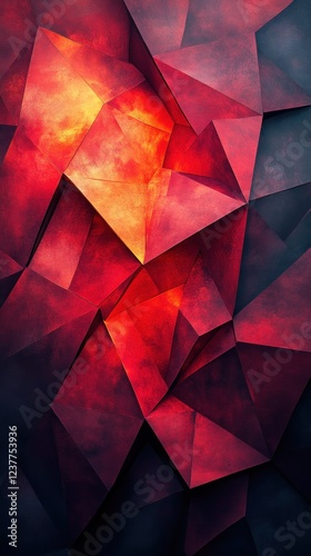 Abstract Crimson Polygonal Landscape: A Fiery Red Geometric Masterpiece