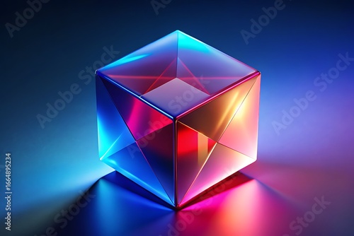 Abstract Crystal Cube with Vibrant Light Refractions A Mesmerizing Display of Geometric Artistry and Modern Design for Digital Backgrounds