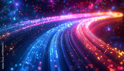 abstract, glowing, light, path, curve, bright, colourful, digital, art, design, illustration, render, energy, motion, speed, flow, stream, cosmic, space, galaxy, universe, dot, particle, bokeh, dynamic, futuristic, technology, network, datum, connection, online, information, communication, fiber, optical, wave, visualisation, vibrant, background, effect, graphic