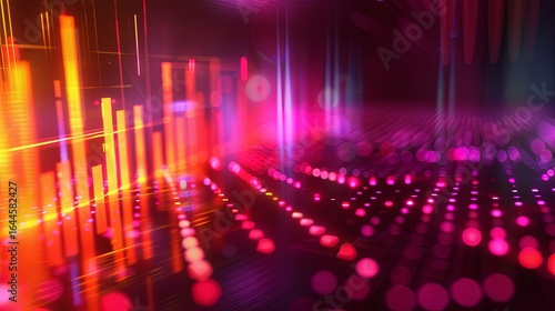 Abstract Cyberpunk Digital Landscape with Neon Light Beams and Data Stream Aesthetic