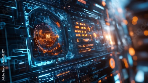 interface, futuristic, technology, digital, abstract, glowing, line, circle, orange, blue, dark, background, screen, neon, light, design, graphic, tech, cyber, science fiction, virtual, reality, concept, artificial intelligence, computer, network, datum, system, future, modern, abstract art, graphic design