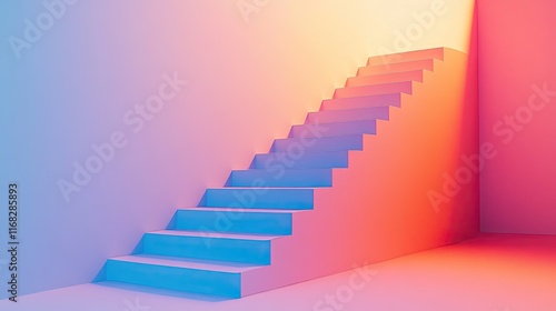 Abstract D steps creating a sense of perspective and depth on a neutral gradient.