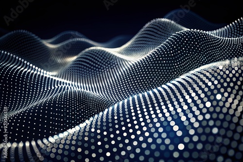 Abstract dark background featuring a wavy pattern of small white dots that create a sense of movement and texture, perfect for creative compositions.