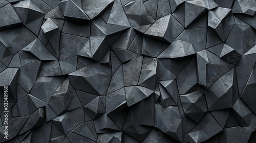Abstract dark black geometric 3D triangle pattern background. Modern low poly design with dynamic polygon shapes and sharp edges.
