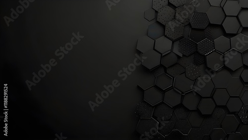 Abstract dark black geometric hexagonal mesh material header. Technology banner with blank space for your logo. Vector abstract widescreen backgroundGenerative AI