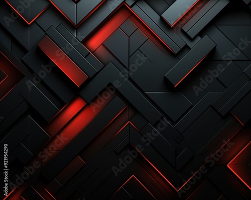 Abstract dark geometric background with red glowing lines.