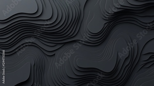 landscape, abstract, dark, layer, texture, background, design, pattern, graphic, illustration, black, grey, wave, curve, line, shape, modern, art, style, minimal, elegant, digital, surface, paper, three-dimensional, rendering, concept, smooth, shadow, geometric, elevation, topography, contour