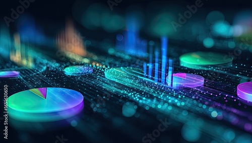 Abstract data visualization with various charts and graphs