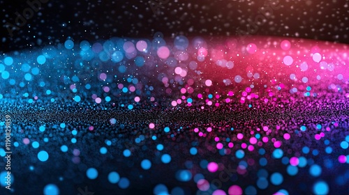 Abstract digital background featuring vibrant pink and blue bokeh lights on a dark surface, creating a dynamic and colorful atmosphere.