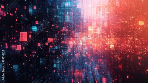 Abstract digital city landscape with colorful lights