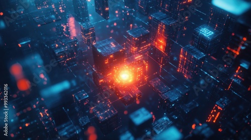Abstract Digital Cityscape - Glowing Cubes and Lines - Futuristic Technology Background