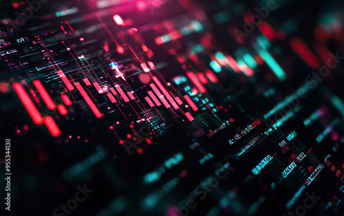 Abstract digital illustration featuring vibrant data visualization in red and teal tones, representing technology and innovation.