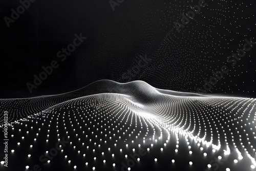 abstract, digital, landscape, illuminated, dot, wave, three-dimensional, visualisation, technology, art, design, black background, futuristic, pattern, light, depth, texture, motion, fluid, creative, modern, aesthetic, graphic, simulation, space, environment, geometry, concept, minimalism, elegance, dynamic, structure, visual, representation, illusion, surface, arrangement, aglow, scenery, artistic, digital artwork, rendering, high technology, innovation, virtual, captivating, aethereal, waveform