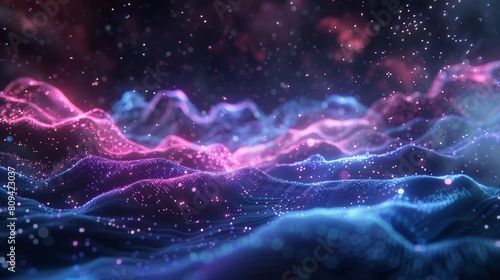 abstract, digital, landscape, neon, particle, three-dimensional, render, glowing, futuristic, terrain, wave, light, motion, technology, cyber, virtual, graphic, design, datum, visualisation, wallpaper, cybernetic, computer, generated, vibrant, energy, modern, electronic, science