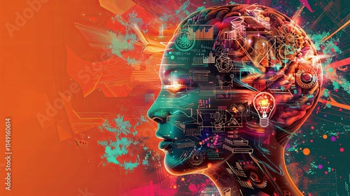 design, intricate, abstract, orange, red, light, energy, power, vibrant, colourful, brain, idea, innovation, intelligence, creativity, cognition, mind, thinking, concept, technology, science, futuristic, bulb, network, complex, learning, datum, digital, information, growth, logic, progress, future, process, teal, art, code, system, algorithm, computer, vision, development, gear, mechanism