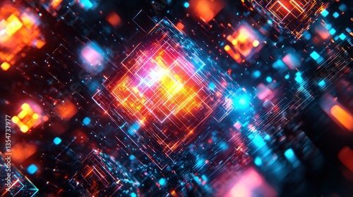 datum, network, technology, digital, circuit, energy, light, colours, graphic, design, innovation, future, abstract, system, connection, complex, pattern, geometric, glowing, line, square, cube, node, interface, matrix, information, processing, speed, communication, transformation, dynamic, visual, art, creative