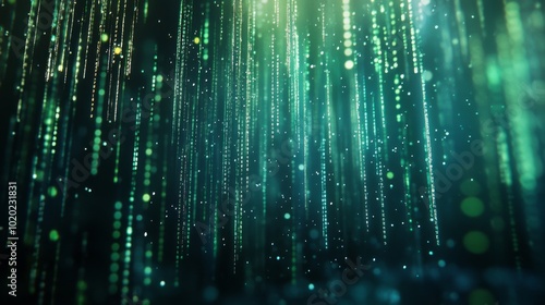 abstract, digital, rain, green, white, particle, falling, streak, line, blur, bokeh, background, glow, light, dark, teal, blue, technology, futuristic, motion, flow, datum, code, binary, matrix, science, design, graphic, wallpaper, illustration, pattern, texture