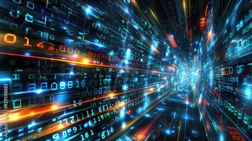 digital, tunnel, abstract, information, datum, stream, line, glowing, number, blue, red, orange, dark, speed, technology, future, cyber, space, network, code, binary, virtual, reality, matrix, programming, coding, science fiction, futuristic, innovation, progress, design, graphic, art, concept, visualisation