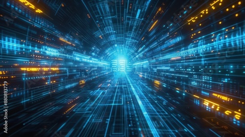 digital, tunnel, light, blue, orange, speed, movement, abstract, technology, futuristic, glowing, line, geometric, pattern, background, design, graphic, art, three-dimensional, render, illustration, concept, science, fiction, datum, network, code, binary, virtual, reality, space, future, dynamic, energy, bright, high-coloured, hypnotic