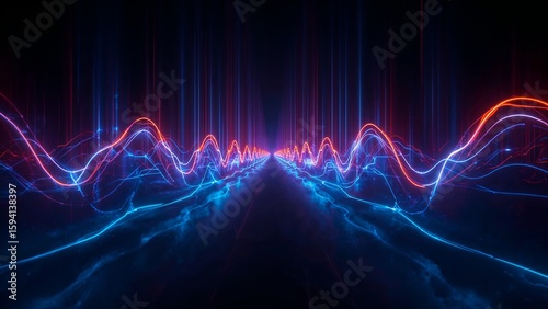 tunnel, digital, abstract, glowing, line, vibrant, colours, red, blue, energy, futuristic, light, wave, pattern, design, technology, motion, abstract art, illuminated, spectrum, symmetry, space, neon, corridor, path, virtual, three-dimensional, rendering, graphic