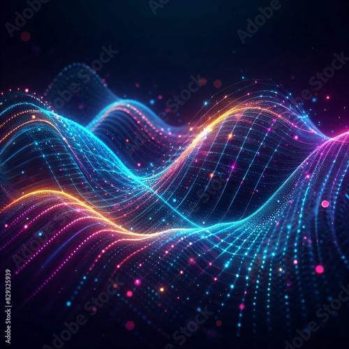 particle, futuristic, illustration, science fiction, innovation, cyber, virtual, network, matrix, quantum, dynamic, modern, high technology, flow, motion, connectivity, ai, digital artwork, waveform, technically