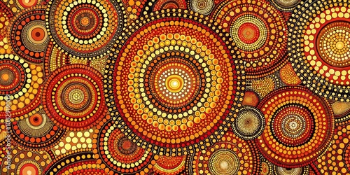 Abstract Dot Painting with Orange and Yellow Circles, Dot Art, Aboriginal Art