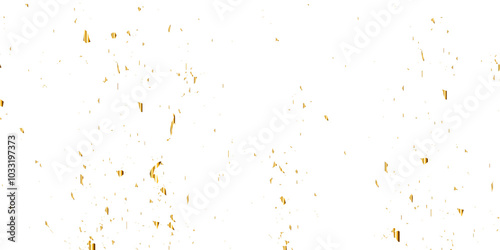 Abstract doted and confetti golden glitter and dust particles splatter on transparent background. Dust golden grunge background. Vector illustration.