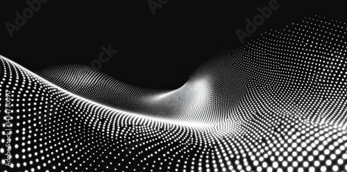 abstract, waveform, dot, point, particle, digital, technology, futuristic, modern, elegant, sleek, dark, light, contrast, monochrome, black, white, gradient, flow, motion, movement, energy, dynamic, smooth, curve, ripple, wave, pattern, texture, design, background, illustration, graphic, art, visual, aesthetic, style, concept, space, cosmos, network, connection, datum, information