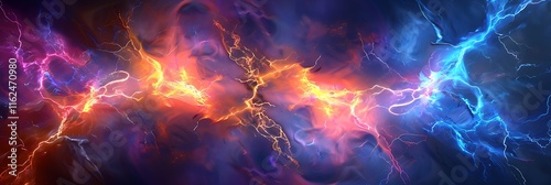 Abstract energy streams in vibrant hues of blue, red, and purple. Features swirling patterns and a dynamic, electrifying feel. Evokes power or cosmic phenomena.
