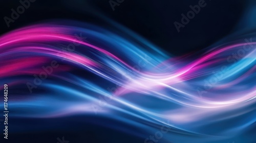 Abstract energy waves, flowing light streams, cosmic art, neon blue and purple colors, glowing ethereal ribbons, dark space background, digital art, vibrant luminescence, futuristic design, smooth cur