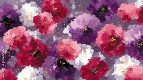 abstract, floral, flower, art, paint, pink, purple, white, vibrant, bold, colours, texture, pattern, design, modern, impressionistic, bloom, bouquet, closeup, detailed, artistic, impressionism, decorative, background, graphic, style, painting, high-coloured, palette, mixed, colours, many-coloured, gold, dot, speckle, splash, modernist, decor, poster, print, wall