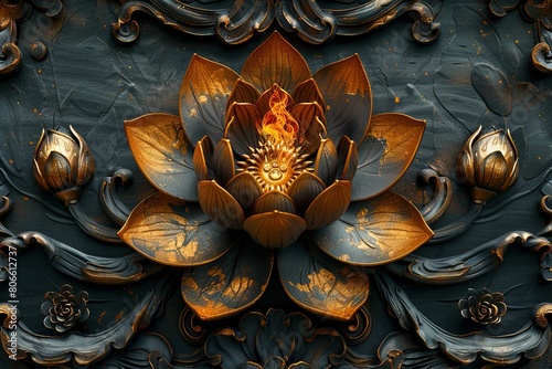 Abstract floral composition with gold elements on black background