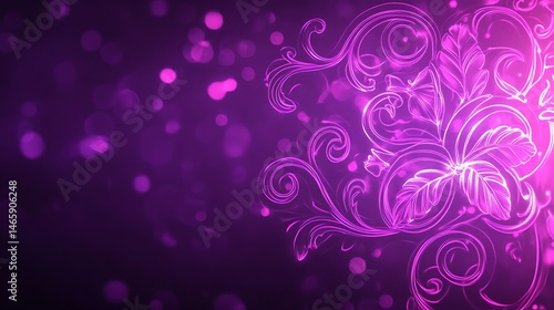 abstract, floral, design, purple, vibrant, glowing, pattern, ornate, elegant, decorative, background, texture, light, sparkle, bokeh, illuminated, art, graphic, decoration, illustration, modern, style, creative, colours, wallpaper, poster, digital, image, artwork, vector, leaf, vine, scroll, curve, outline, glow, pink, dark