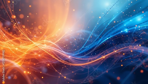 Abstract Flowing Energy Lines with Orange and Blue Light Streaks