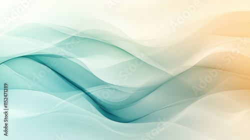 Abstract flowing waves with layered gradients in teal and soft orange tones, creating a tranquil and dynamic design that evokes a sense of movement and harmony. Background