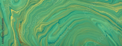 Abstract fluid art background green and yellow colors. Liquid marble. Acrylic painting with emerald gradient and splash.