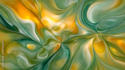 Abstract Fluid Art Background with Swirling Green and Yellow Colors in Motion