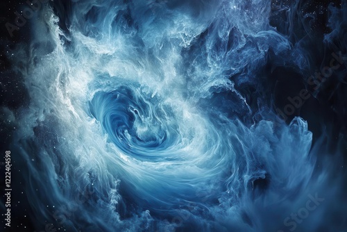 abstract fluid art with swirling indigo and teal pigments creating cosmic patterns, high-contrast liquid photography