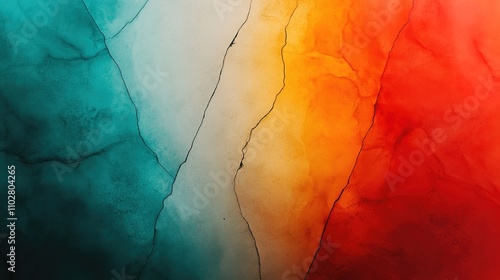 Abstract Fluid Art with Turquoise, Orange, and Red Waves Creating a Vibrant Background with Subtle Textures and Fine Cracks Ideal for Creative Projects and Designs