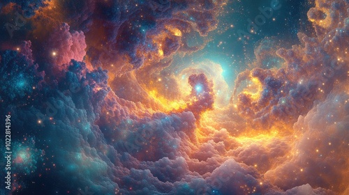 abstract, fractal, background, textured, chaos, ornamental, flare, radiating, light, luminance, magical, universe, galaxy, fantasy, digital, design, pattern, colours, vibrant, aglow, organic, energy, shape, symmetry, dynamic, imagination, surreal, cosmic, concept, illustration, artistic, visualisation, abstraction, beauty, aethereal, mesmerizing, creativity, aesthetic, infinite, dreamlike, captivating, exploration, depth, visual, harmony, high-coloured, enchanting