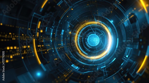 Abstract futuristic blue and yellow circle interface background