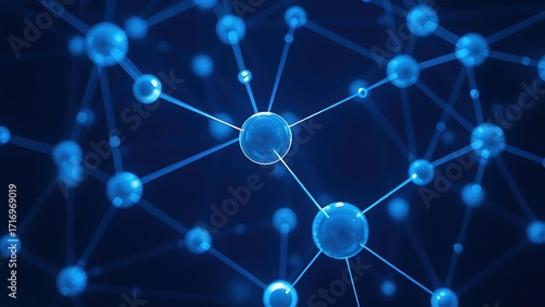 Abstract futuristic structure of interconnected glowing spheres floating in dark space, symbolizing digital networks.