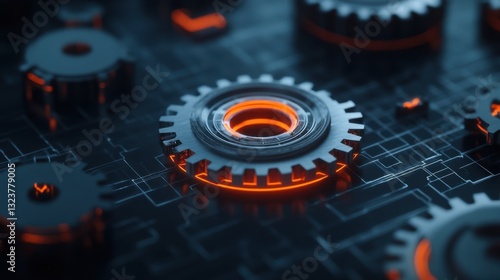 Abstract futuristic technology background featuring glowing gears and circuit patterns, symbolizing innovation and engineering in digital design
