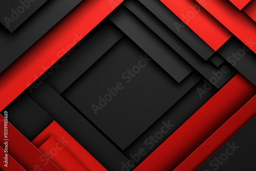 Abstract geometric background with layered red and black shapes.